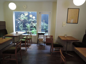 天井が高く、広く感じられる店内は、席ごとに距離が取られており、話し声や物音がやわらかく吸い込まれていくよう。